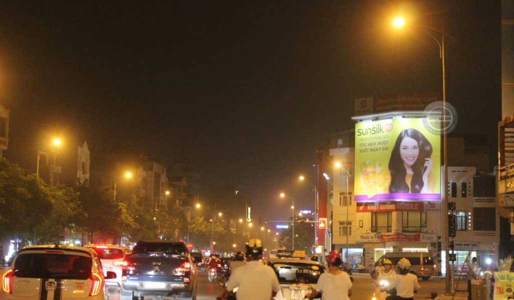 Hệ thống chiếu sáng giúp biển quảng cáo luôn nổi bật trong đêm tối, thu hút sự chú ý của người đi đường.